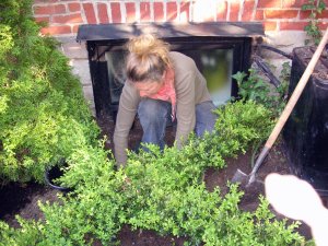 Natalie planting in a tiny front garden